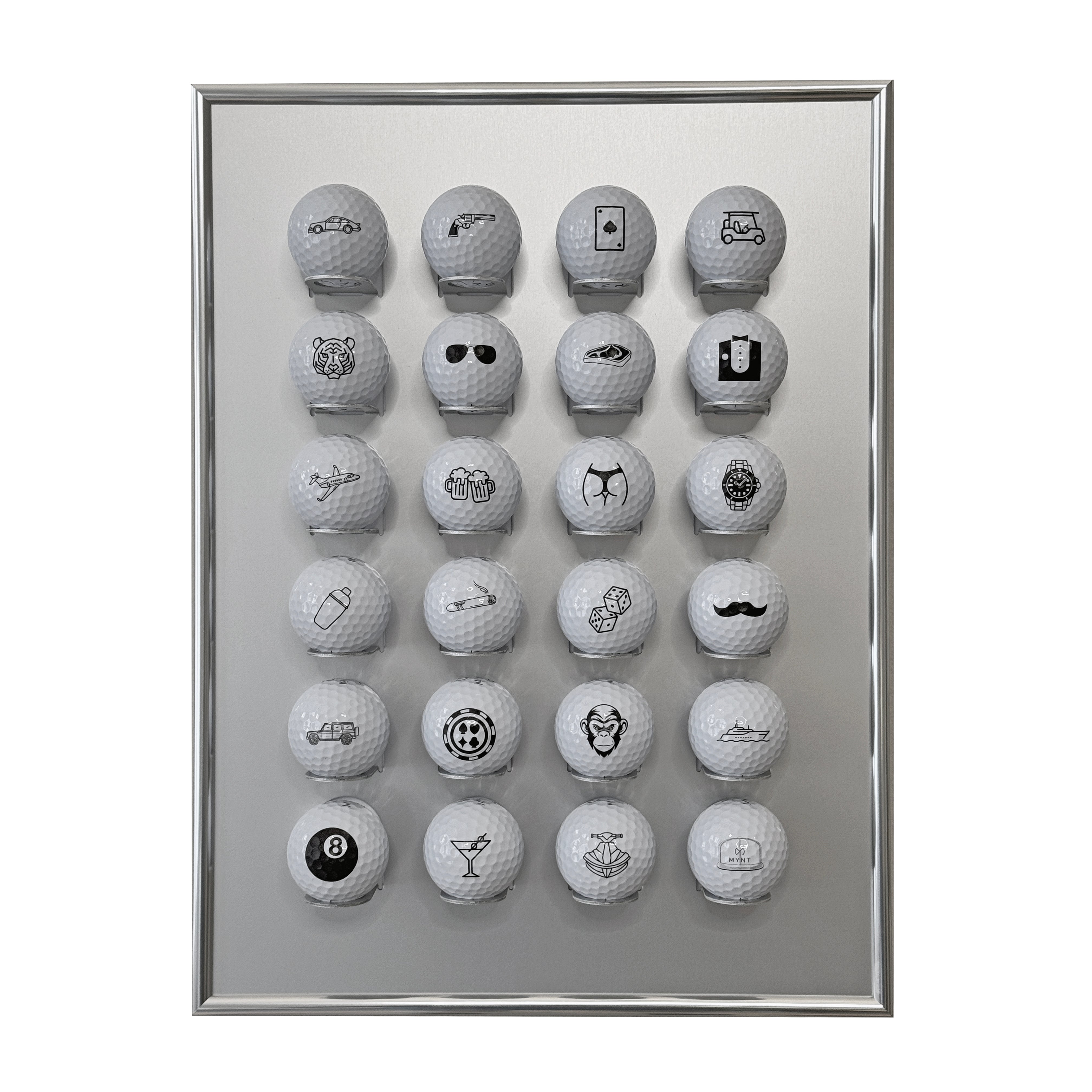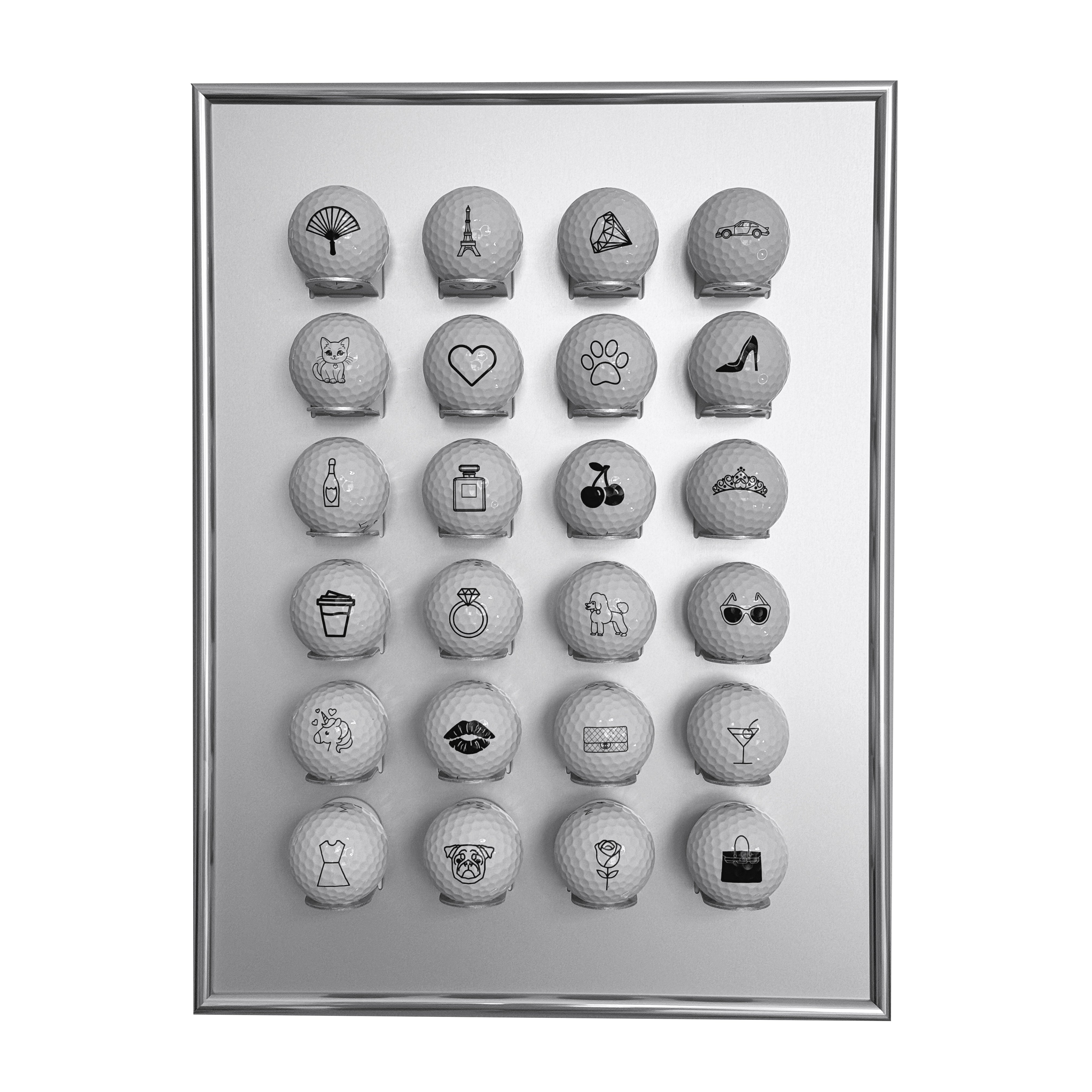 Custodia opzionale per palline da golf in alluminio di alta qualità con cornice argentata lucida, offre spazio per 24 palline da golf