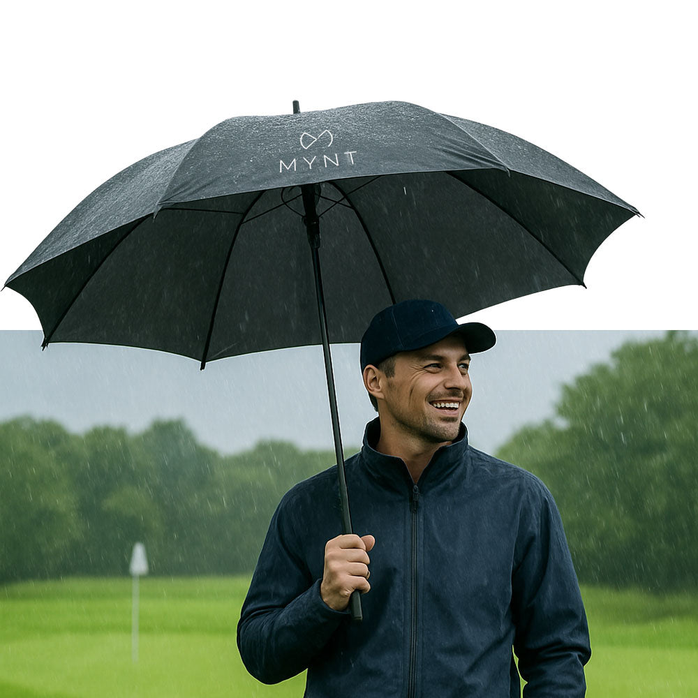 Der Mynt Pro Rain ist superleicht, riesengroß und hat den bekannten Golfschirm-Effekt (Doppeldach), wodurch selbst starke Böen in der Hand kaum spürbar sind. Die Automatik öffnet leicht und zuverlässig, und er lässt sich auch ohne viel Mühe wieder schließen.